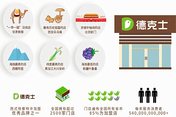 9、德克士门店遍布全国所有省市85%为加盟店。