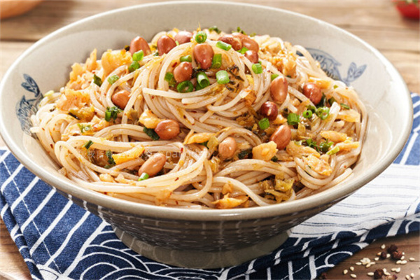说到南昌美食,所有南昌人首先都会推荐南昌米粉。南昌米粉历史悠久,主要制作原料是优质晚米,经过浸米、磨浆、滤干、采浆等多道工序制作而成,与其他地方所产的米粉不同,对粉的韧性要求特别高,未煮的生粉根根结实、透明,煮后的熟粉条条细嫩、洁白,具有久泡不烂、久炒不碎、韧而不硬的特点。一般南昌人吃米粉,主要是凉拌米粉、炒米粉、煮米粉。
