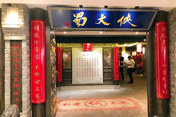 蜀大侠火锅最大的特色在于其鲜明的江湖文化主题。无论是门店的装修风格、员工的服饰,还是菜单的命名和整体氛围,都充满了浓郁的侠义风格。进入蜀大侠的店铺,就像踏入了一个江湖世界,墙上的书法、灯笼、木质装饰,以及与武侠故事相关的摆件,都让顾客仿佛置身于一场古风美食的冒险。